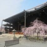 3月末に知恩院に桜を見に行った後、北西に約10分歩き、要法寺(ようぼうじ)に参拝しました。 要法寺は、人通りが多い三条大橋からそれほど離れていないのに訪れる人が少なめ。 この時期も、本堂の前に植わった2本の三春滝桜が花を咲かすのですが、参拝者は増えません。 おかげで心静かに花見ができるのがありがたい。