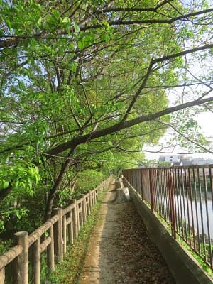 この後は、淀水路に河津桜の新緑を見に行きます。