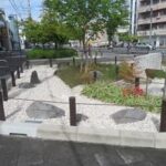 京都市伏見区の京阪淀駅を西に出るとバスターミナルがあります。 そのバスターミナルから横断歩道を西に渡ってすぐの場所に雨庭が作られているのに気づきました。 最近、京都市内で雨庭が増えていますね。