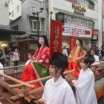 10月22日に木屋町三条に時代祭を見に行きました。 楠公上洛列の次は、中世婦人列がやって来ます。