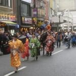 10月22日に木屋町三条に見に行った時代祭。 中世婦人列が通過した後は、鎌倉時代の列がやって来ます。