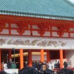 元日に粟田神社に参拝した後、神宮道を北に約8分歩き、京都市左京区の平安神宮にも参拝しました。 平安神宮は平安遷都1100年を記念して創建された神社で、観光客や旅行者の方にも人気があります。 もちろん、初詣客も多く、元日からお参りするのは避けた方が無難なのですが。 それでも、平安神宮を訪れたのは、昨年末に工事を終えたぴかぴかの大極殿に上がり、新年を清々しい気分で迎えたいから。